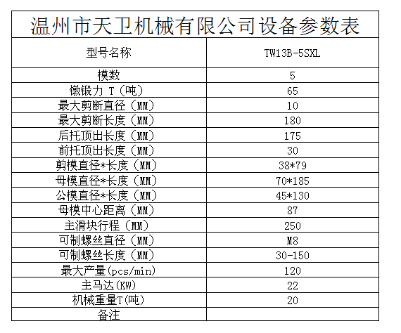 您當(dāng)前的位置:首頁 / 產(chǎn)品中心 / 五模五沖多工位冷鐓機(jī) / └ TW13B(M8)多工位冷鐓機(jī) / TW13B-5SXL全自動(dòng)多工位冷鐓機(jī)